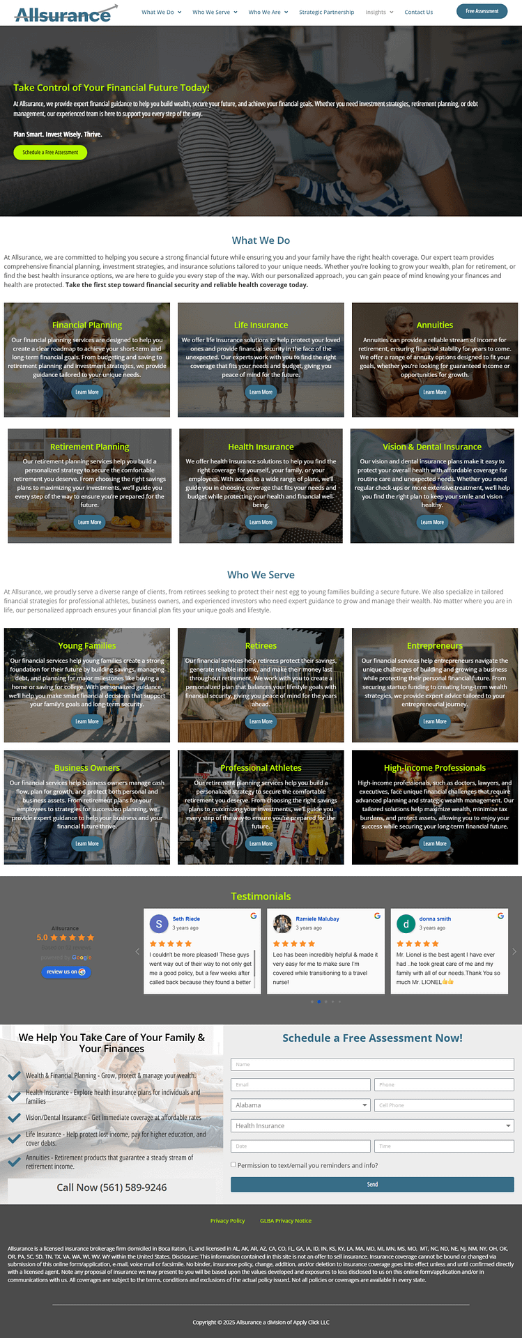 Allsurance offers a number of services including health insurance, life insurance, retirement planning and financial planning. Our focus this near year is on building the company and with a leads system being built we wanted each page to have clear call to actions and quick easy ways for potential clients to contact us.